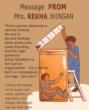 Behind every great change stands a woman with courage, purpose, and an unshakable belief in humanity. Mrs. Rekha Jhingan, Founder and Chairperson of Sahaj Sambhav NGO, has devoted her life to serving those battling addiction, mental health challenges, and social neglect - helping them rediscover hope, dignity, and direction. Her journey began with personal pain but transformed into a movement that now touches lives across India. Through two decades of relentless service, she has become a symbol of resilience, empathy, and transformation.
